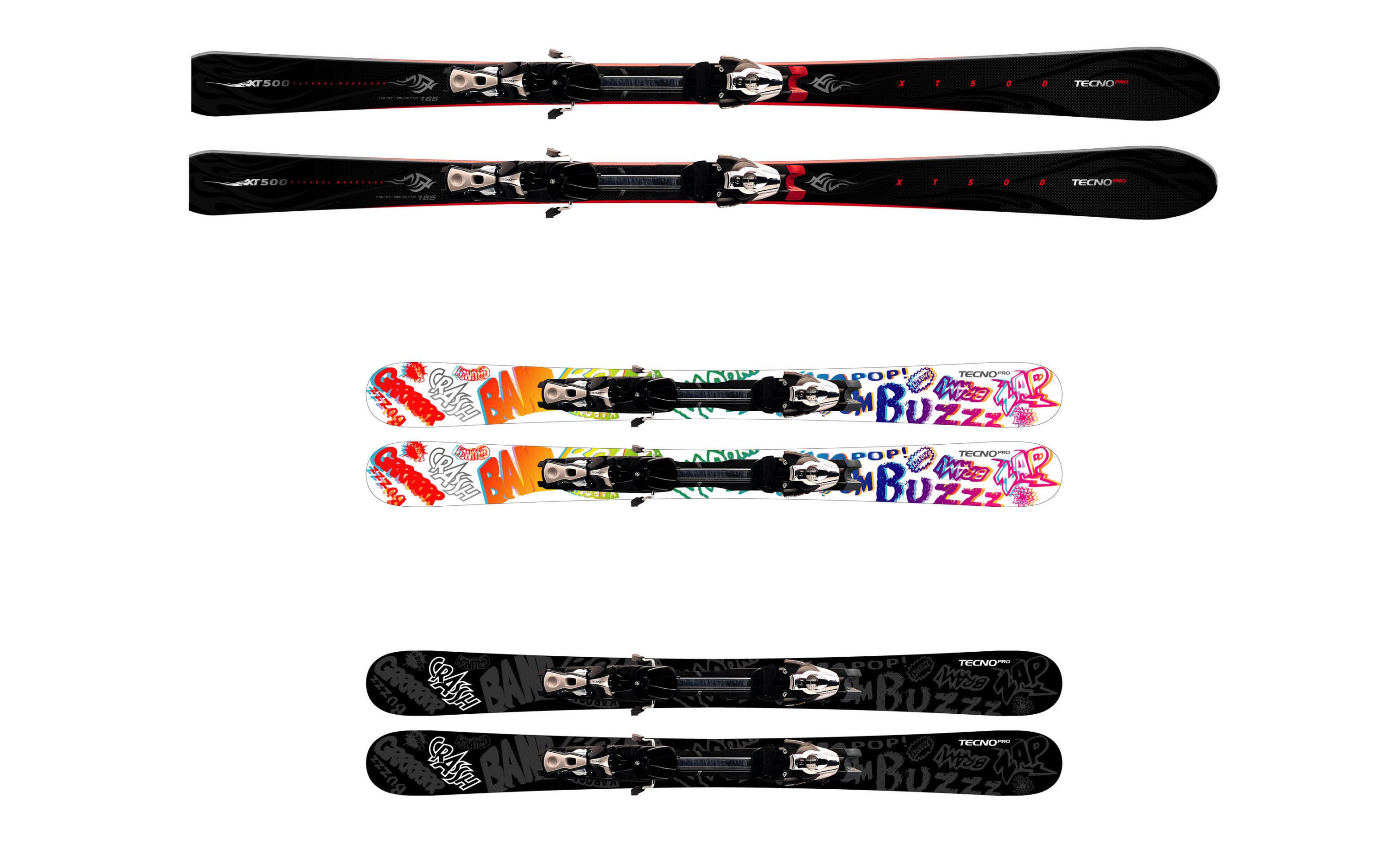 Création de décors de skis destinés aux différentes gammes de la marque Tecno Pro d’Intersport. Beaucoup de propositions pour couvrir une gamme de plus en plus étoffée et ciblée