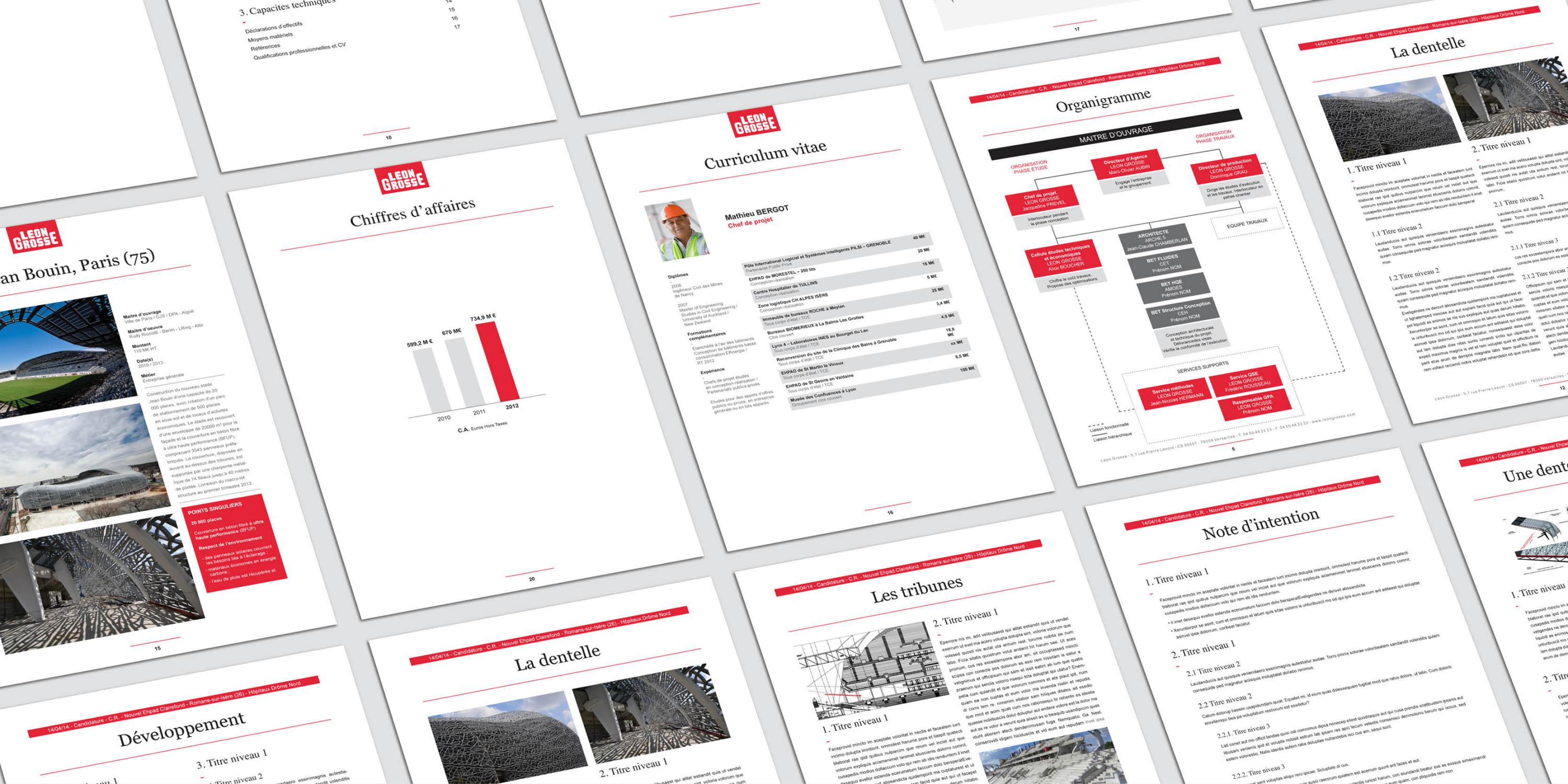 Léon Grosse, entreprise de BTP, souhaite harmoniser et charter ses documents destinés aux développement interne et externe destinés aux appels d’offres.